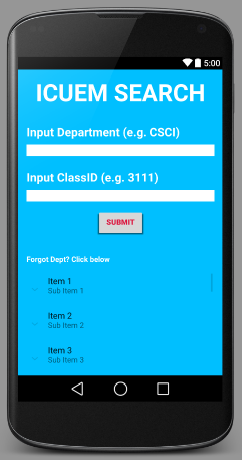 This is just a visual pictorial of the android portion of ICUEM. Some images are slightly modified due to confidentiality.